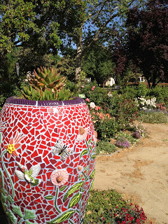 Amid the roses and lavender and scores of native plantswere intricate mosaicsand sculptures