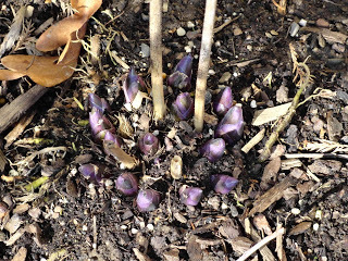 Something is sprouting here -I can't remember what -but love the surpriseand the energyof these tenacious purple sprouts.