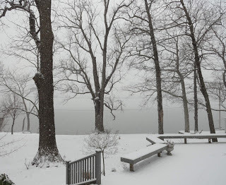 This morning, we awoke to a blue-white scene (view from the office):