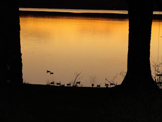 Two nights ago, the scene above:geese on tranquil lakeat sunset.