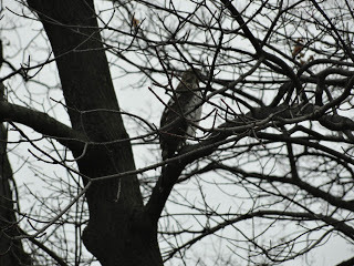 A hawk hovering in our yard, waiting to scoop up dinner in the form of a chipmunk.
