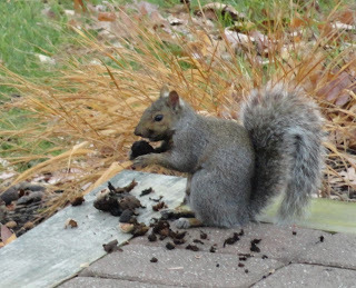 Squirrel stopping for a snack on the steps.