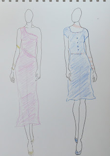 The two garments below are not elegant - I just quickly drew them on the croquis so you could see what the templates are like.