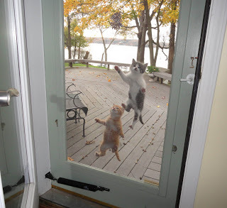 Mewmewmewmewmewmew.They climbed to the top of the screen doorandthenfelloff.