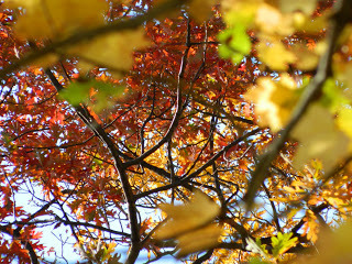 The leaves are just past peak, with more on the ground than on the branches.
