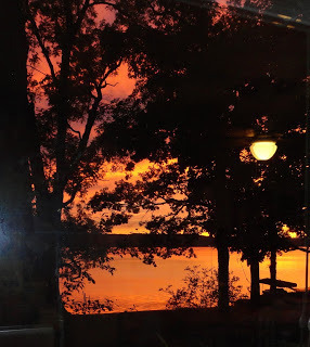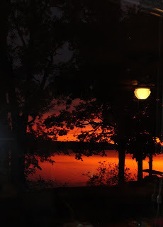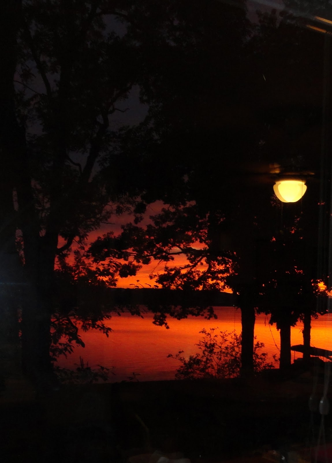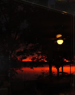 When I'm writing, I'm not aware of time passing and am surprised when I look up and see visible signs of that lapse. I took this set of pics over the course of an hour while I was also writing. (The yellow globe in these photos is the reflection of the interior light, not an errant moon.)