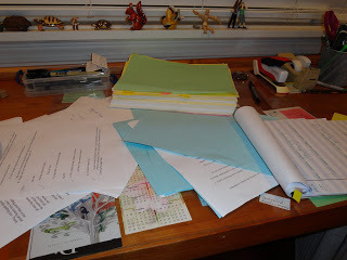 About eleven months from now: publication day of the book that's the bigga mess on desk above.