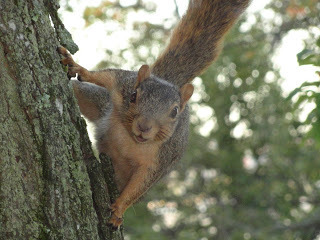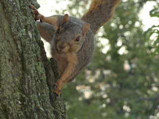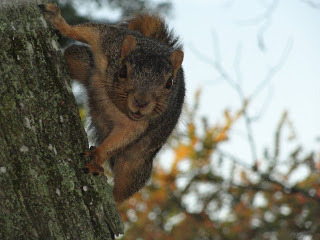 The squirrel is back, really interested in this new book I'm working on. She sits there for up to ten minutes at a time, several times a day, turning her head this way and that, inching closer to get a better look, not at all afraid when I lift the camera to record her existence.