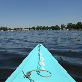 One of my most favorite places to be: in my blue kayak on the lake. I've had this kayak for over twenty years. It's a sit-on-top kayak, perfect for these hot days, when you can dangle your legs over the side.