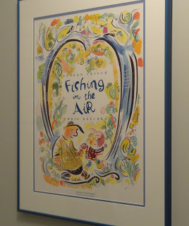This is a poster made from Chris Raschka's artwork for Fishing in the Air, a story about a father and a boy going fishing. It is also about how our imaginations are shaped, and I was stunned by how Raschka so beautifully captured that abstract concept.