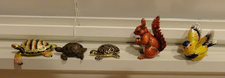 Mini critters seem to be multiplying here. We're not able to keep real animals inside (because of travel and allergies), so these are stand-ins. I'm not quite sure why, but turtles, squirrels and birds are regarded as lucky in this house.