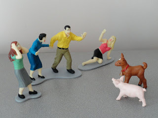 Continuing from last post: more 'B-movie figures' with small animal figures, a sample scene the grandchildren concoct.