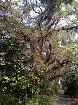 I'm in North Carolina right now, immersed in writing the newest book. The photo above is from nearby Orton Plantation, and I've chosen it today because it reflects the state of my mind as I trek through this first draft. I can only see a little way ahead each day; I wish I knew what was at the end of the path, but I don't. All around is a sea of mossy strands, threatening to overtake. Enticing red flowers tempt me off the path. Do I go there? Or stay on the path?
