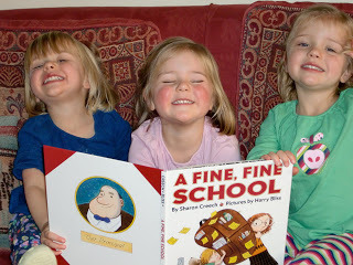 I rarely have the chance to catch readers in the act of reading one of my books, so these two photographs are treasures. The girls are triplets.