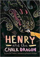Henry placed the plastic prison carefully under his chair and whispered, “There was a dragon in my house this morning ,and now it's inside the lunchbox.”Oscar's eyes opened wide. “How many teeth does it have?”That's why Oscar was Henry's friend. He asked the right questions.- Jennifer Trafton, HENRY AND THE CHALK DRAGON