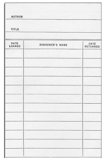 For those of you not old enough to remember the old cards used to check out books from the library, here's what they looked like: