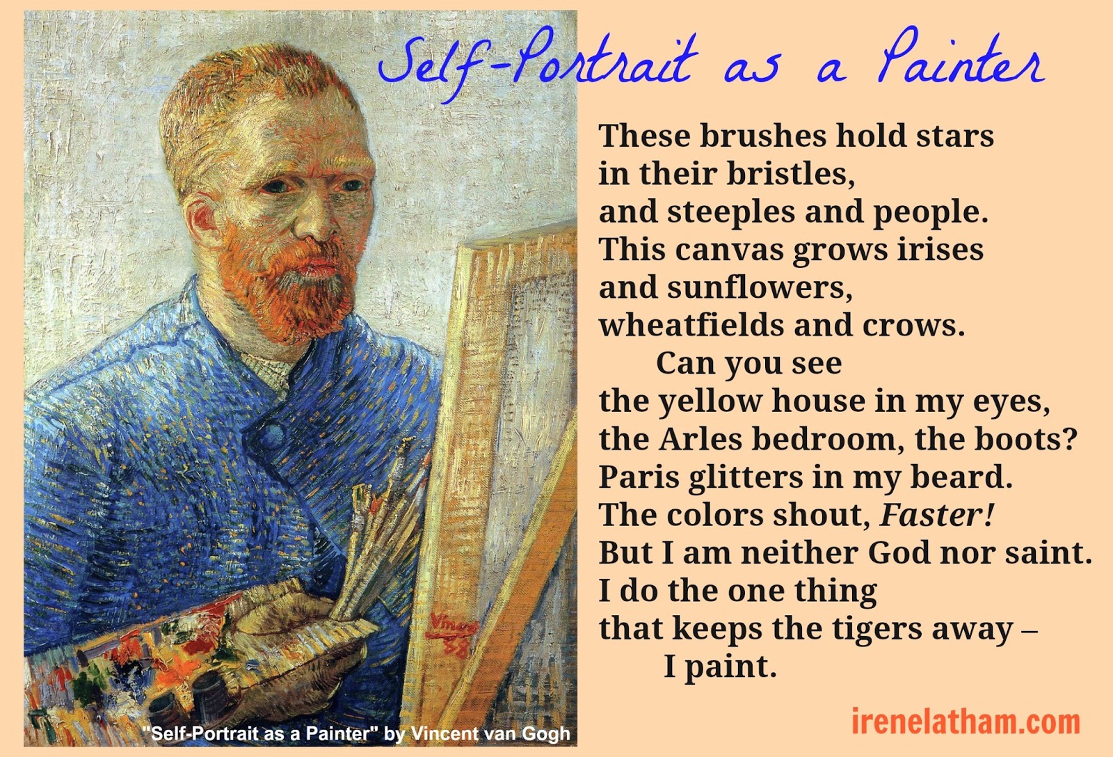 And now, a bonus: here is a favorite poem from ARTSPEAK! Portraits, inspired by "Self-Portrait of a Painter" by Vincent van Gogh. Thank you so much for reading!