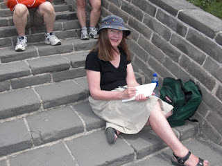 So here I am, writing on the Great Wall of China on a trip in 2013, where I went to give a talk at a conference of American and Chinese children's literature scholars sponsored by Ocean University in Qingdao.