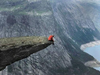 We stashed our bikes in the safety of some thick rhododendron bushes and headed to where the grass stopped and the cliff began.