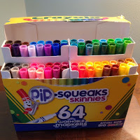 This winter has turned out to be busy and productive. Over the holidays I worked on the end matter for my verse novel that’s arriving next year and on February 2nd I welcomed a new picture book into the world. Now my focus is shifting. I want to think about what I’d like to work on next. I need to organize, clean, repair things around the house, and I want to create an art or craft project. So I’m arming myself. I’m making a list of those house projects, looking at new crochet patterns, thinking about what creative projects I’d like to jump into. I went to Target for supplies. I wandered past the crafts, coloring books, crayons. My heart skipped a beat when I came across this 64 pack of Crayola Pip Squeak Skinnies markers. (That never happens in the cleaning-supply aisle.) I have an eight-pack of these little gems at home that I’ve nearly doodled dry, but now I have 64 lovely new markers ready for any doodle project!