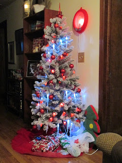 Check out the small tree leaning against the wall, to the right of the large one. It belongs to my dog Jake. Ya know--because ALL dogs deserve their own trees. Happy holidays, all!