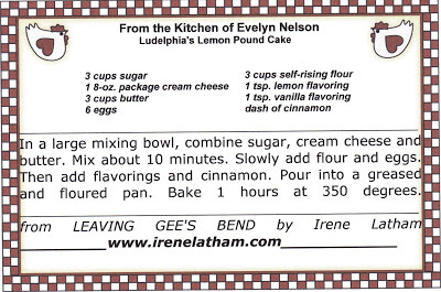 In LEAVING GEE'S BEND, reader letters often mention the big breakfast Ludelphia has at Mrs. Cobb's house -- where she also drinks a coke for the very first time! When I visit book clubs, refreshments often include Coke and Ludelphia's Lemon Pound Cake, a recipe adapted from my Grandma Dykes's recipe. It's old-school, dense, moist, delicious. Yum!
