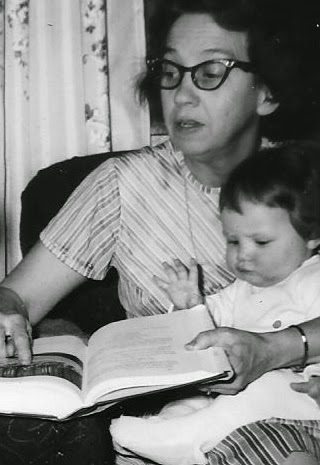 Grandma Will reading a big book to my sister & me (notice my grabby hand.)I started to become a writer when I was a baby – it’s true. I was lucky enough to have parents who read to me, to have grandmas and grandpas and uncles and aunts who gave books as gifts, to have an older sister who would read to me then with me, and a younger brother who listened to me read to him. As a very young child I fell in love – with rhythm, rhyme, stories. Eventually, with the help of thoughtful librarians and patient teachers, I began reading and writing stories and poetry on my own.