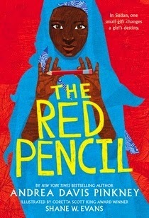 Amira, just twelve years old and in the midst of civil war-torn Sudan, wants nothing more than to learn to read and write and to attend school. I fell in love with little Amira from Andrea Davis Pinkney's first word in her stunning new novel, THE RED PENCIL.