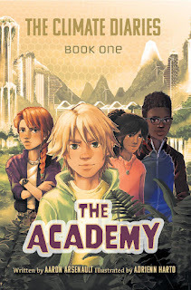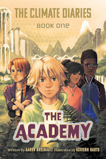 Aaron Arsenault’s new novel, The Academy, focuses on climatechange. “I was looking for something to read to my own kids aboutclimate change that was inspiring, and I couldn’t find anything!” he said. “Whatlittle there was in the genre seemed to be so negative and dystopian. I wantedto find something for them with a hopeful voice. So, I set out to dosomething about it and wrote my own!”