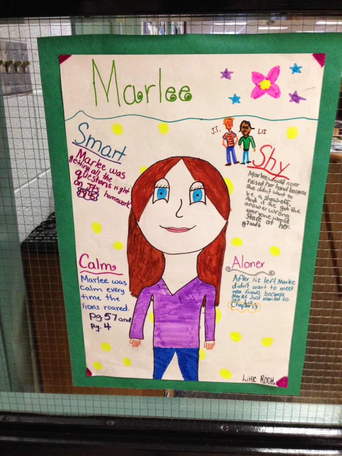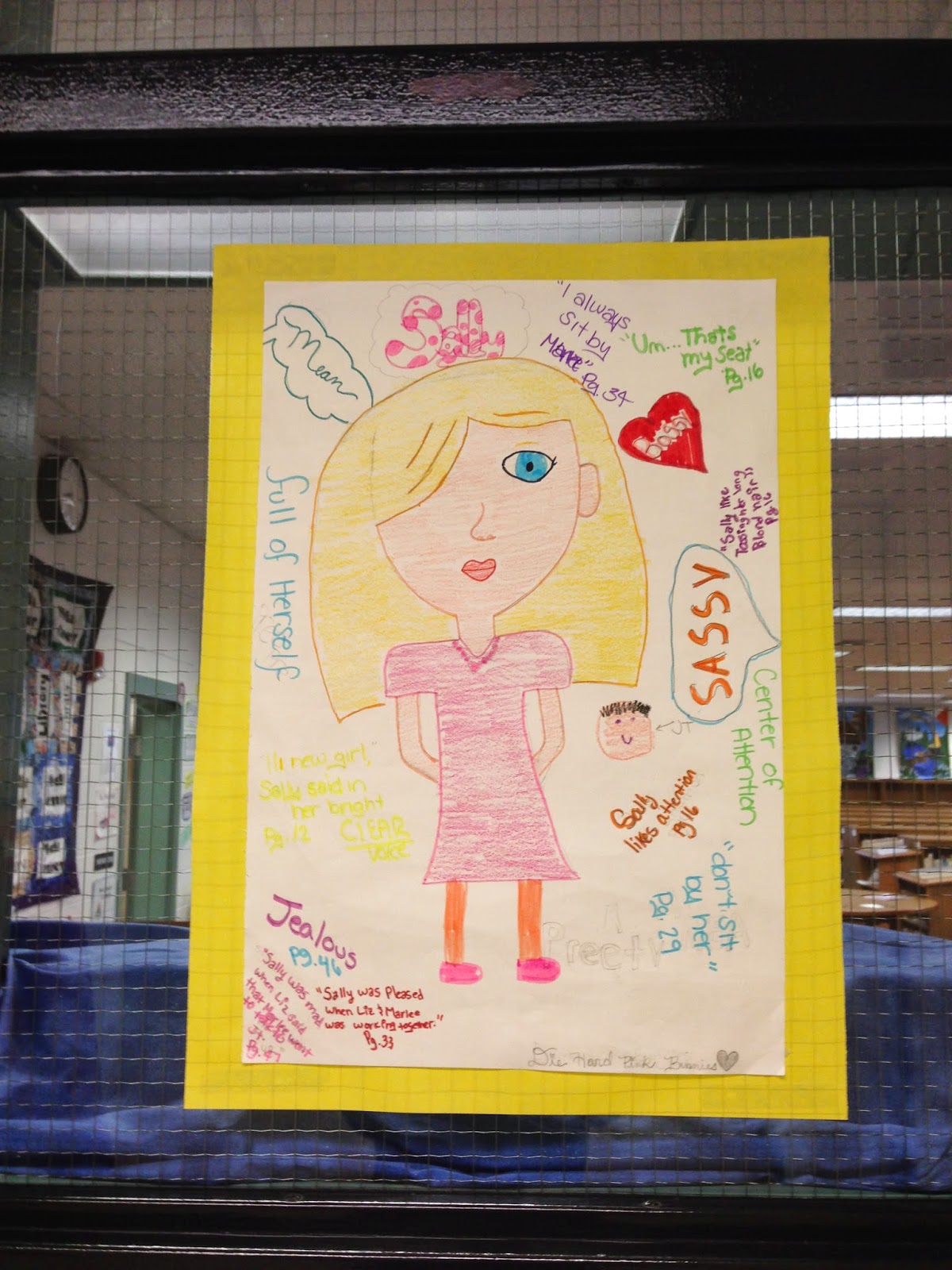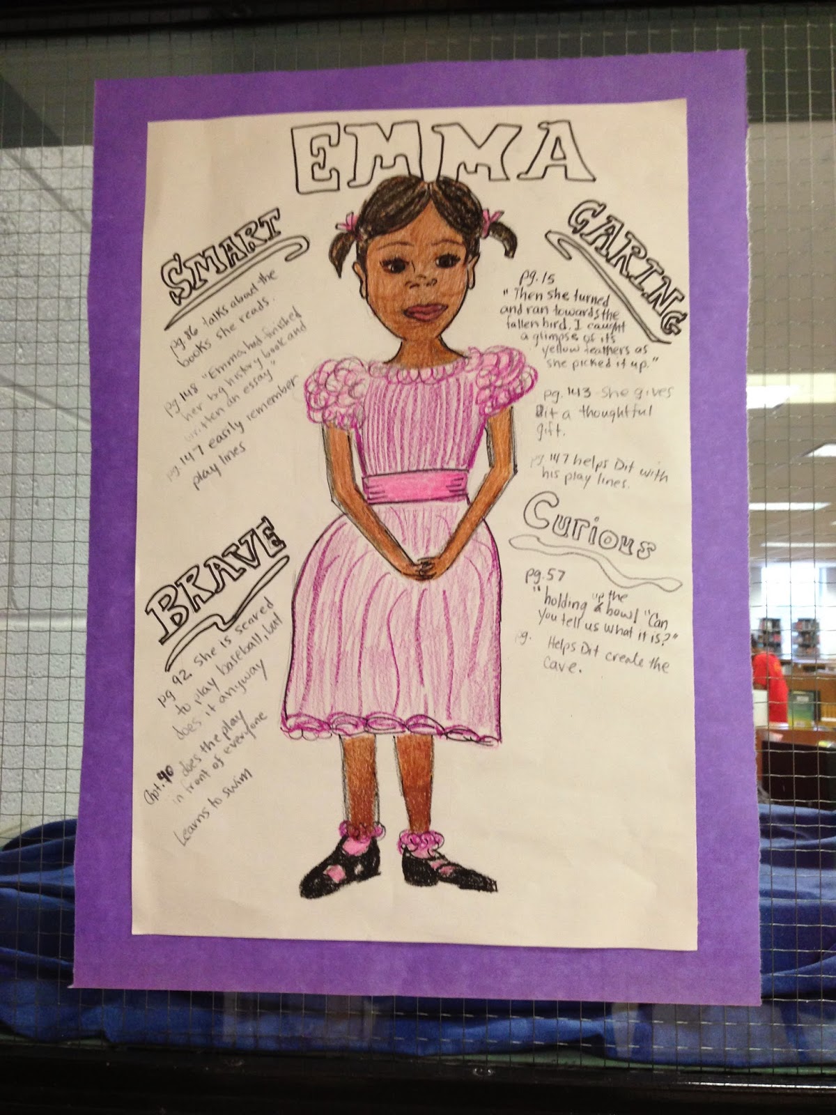 Character descriptions are really hard for me. Sometimes, I can barely describe my own family and friends, much less an imaginary person I've made up! So I love getting to see what students think my characters look like. Here are some projects shared with me at a recent school visit to Drew Middle School in Fredericksburg, VA.