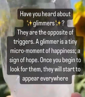 And just about that time, a meme made its way to my page,defining the nature of glimmers. A glimmer is that micro-moment of happiness; asign of hope.