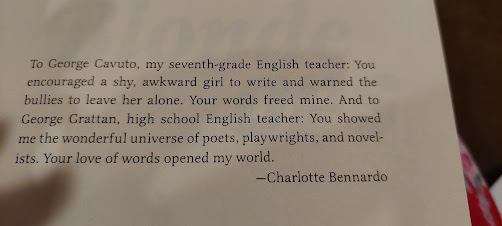 My favorite teacher? It's a tie between my seventh grade and senior high school English teachers; Mr. Cavuto and Mr. Grattan. I admired them so much, I dedicated Blonde OPS to them:
