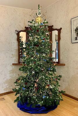 Every year my imagination conjures a new Winter Solstice Tree design. I make a sketch, think of a limited color palette, gather materials, and try to make my vision a reality. As always in the process of bringing a vision--whether story, art, poetry--into reality, changes are inevitable. The artist learns to listen to her materials, her evolving characters, images, or metaphors to learn what they have in mind. Often the process is a struggle.