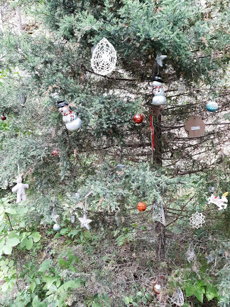 Walking on a forest path outside State College, PA in June 2021. It looks like the fairies had made a recent visit...since these ornaments were not there on the same walk the day before.