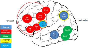 Image from Horowitz-Kraus, T and Hutton, J.S. From emergent literacy to reading: how learning to read changes a child's brain. 2015All these regions of the brain are needed for reading. The red areas are used for attention, concentration, memory and thinking. The green areas use vision to actually see the words. The blue areas are needed for language. The dark blue are for sounding out the words. The yellow are involved with creating meaning. Using so many regions of the brain strengthens the brain by improving the quantity and the quality of neurological connections.