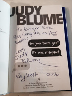 Fast forward to many years later. My father-in-law was on a sailing adventure taking him through Key West. I asked him to stop in at Judy Blume's bookstore if he had the opportunity. He did. AND HE MET HER. Can you imagine?