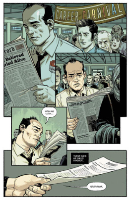 4. That unusually dressed man with a cape and in two of the three colors of the U.S. flag occupies the center of the page, establishing him as the literally central character.