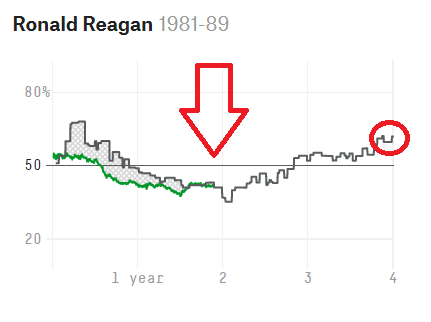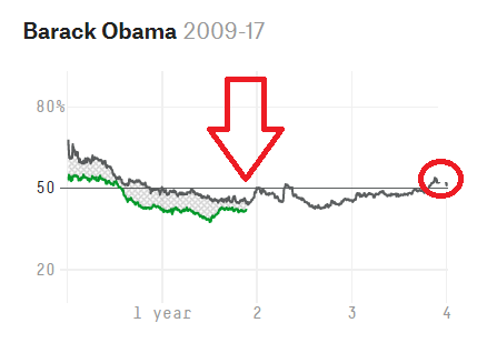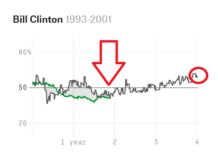 It’s a similar pattern. Clinton was below 50% at his first midterm, and then his approval rose in 1994, well above 50% come re-election.