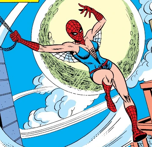 For What If #7 (February 1978), Glut and Hoberg had imagined that three different characters, including Spider-Man’s first girlfriend, Betty Brant, “had been bitten by the radiative spider.” Spider-Girl, the lone female variant, initially avoids using her super-strength but then accidentally kills a criminal and so chooses to end her superhero career.