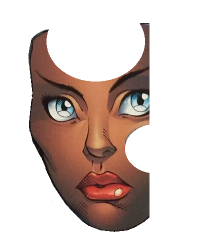 Actually, they took Trio’s and Black Cat’s costumes and skin colors, while Storm’s “alluring” and “beautiful” hair and eyes originated as humanoid bird traits. So Storm is an amalgam of fantastical and real-world qualities, and even where real-world, her Black features are those understood and rendered by a White artist.
