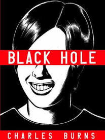 The sixth chapter of Charles Burns’ Black Hole (2005) includes twenty-seven pages. After an unpaired non-rectangular splash page, pages vary between row- and column-based layouts. Sixteen pages either use a 3×2 grid or imply it by combing panels, while another six feature 1×3 columns; the remaining four pages variously combine a regular row with a row of tall panels that echo the columns: