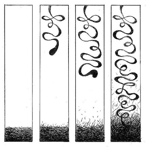 [image error]I suspect it’s that perception of transformation that makes it a sequence and not merely a set. So the first image is a kind of “character” and the “actions” or “events” are its changes, which is a plot. But unlike representational plots, abstract plots have no story world other than the page or screen they physically appear on. They should, however, have plots points. Image content determines those points in representational comics. What determines them for abstract comics?