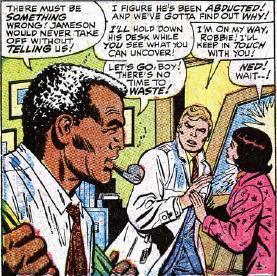 Lee followed Black Panther with the 1967 introduction of newspaper editor Robbie Robertson, second only to editor-in-chief J. Jonah Jameson at Spider-Man’s The Daily Bugle. Identified only as “Robbie” through dialogue, the character enters giving orders to a white reporter after Jameson has been abducted: “I’ll hold down his desk, while you see what you can uncover! Let’s go, boy! There’s no time to waste! (Lee & Romita 1967). Depending on production time, the August cover-dated inclusion of a graying black man in a position of authority directly follows president Johnson’s June nomination of Thurgood Marshall to the Supreme Court. Marvel integrated the Avengers when Black Panther joined the team in an issue on sale while Martin Luther King was murdered in Memphis and President Johnson signed the third and final Civil Rights Act in April 1968. Lee editorialized in his December 1968 “Stan’s Soapbox” in Fantastic Four #81: “Bigotry and racism are among the deadliest social ills plaguing the world today . . . if man is ever to be worthy of his destiny, then we must fill our hearts with tolerance” (Lee 1968). DC, in contrast, prevented creators from introducing black characters. Future Marvel editor-in-chief Jim Shooter, who wrote for Superboy and the Legion of Super-Heroes from 1966-70, recalled: