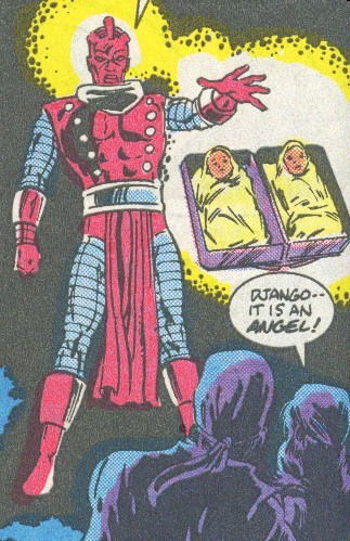 But if High Evolutionary is our grandfather, then the elder god Chthon is too. He was the Devil before Lucifer drove him out, but he preserved a part of his essence in Mom, which is how she got some of her probability-altering “hex” powers. Since it was her hex powers that allowed her to conceive us, we must be part-Chthon. Though some of that hex stuff must have been High Evolutionary’s mutant-like alteration, so, subtracting our temporary adoptive grandpas Whizzer, Magneto, and Django, we still have two different kinds of reality-bending grandpa magic in our genes. Unless it really was Mom’s channeling the “Magick” of the witches of New Salem when she got pregnant, like she thought at the time. Dad was holding onto her, so when the Magick circled them, his DNA was in the mix too. (Some of the witches of New Salem looked like High Evolutionary’s animal-people, but I think that’s just one of those weird coincidences.)