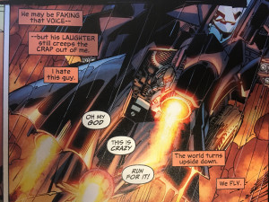 The fact that Batman in Arkham Asylum questions his sanity makes him different from Batman in The Killing Joke, but he still represents reason. Having Batman question his sanity is a twist added onto the basic premise that Batman is sane and the Joker is crazy. There is a theme in Arkham Asylum of people who are supposed to be sane–Batman, doctors, the founder of Arkham–actually being crazy, or at least having a sanity that is questionable. The implication is that everybody is a little crazy, or as Batman puts it at the end, “Sometimes it’s only madness that makes us what we are.”