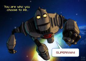 It was true. The robot sacrifices himself to save the kid, to save the whole town, shouting “Superman!” as he rockets into the oncoming warhead.