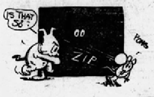 Similarly, the zip lines and onomatopoeic “ZIP” within (or diegetically “in front of”) the black panels must be rendered in white too, as when Officer Pupp throws an unidentified white object at Ignatz in the fifth image. Though the object is likely negative space, the motion lines and the lines of the letters were likely rendered in white ink.