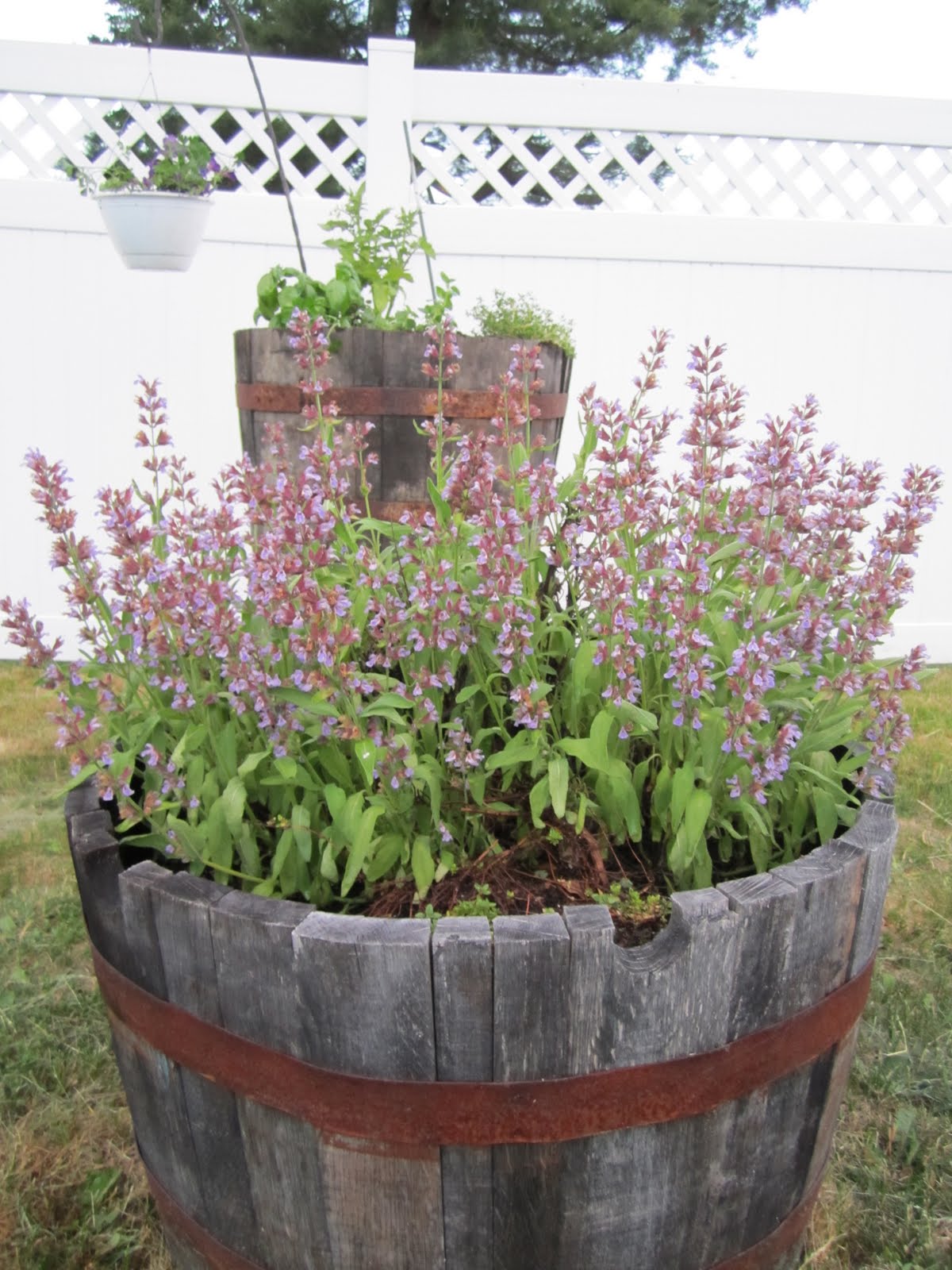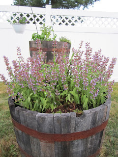 The barrel of sage must not be on his tasty treat list. Each year it remains in the same spot, untouched, growing bigger and bigger. The bees and butterflies are loving it this year, and the blooms are out of this world purple. At sunset they seem to glow.