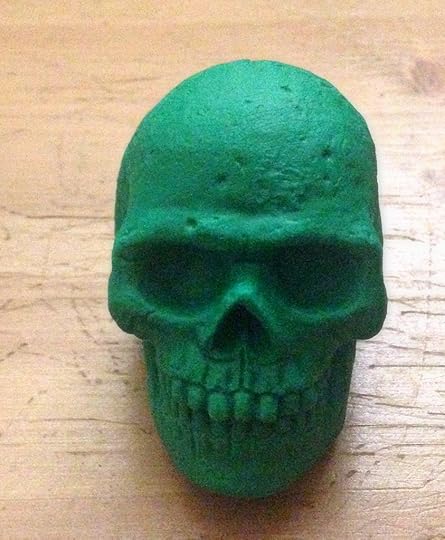 Пророчество про ми-ми-мимира, как это обычно бывает со всякими пустяками, немедленно сбылось для меня: друг Р. подарила мне зелёный череп из Тайгера; считается, будто он - стирательная резинка, но мы-то знаем, кто он.