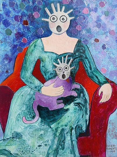 Ив Райзер Робертс (Eve Riser Roberts) - современная американская художница, в анамнезе микробиолог и доктор философии. У неё много пародийных картинок: кот Клее, кот Мунка, кот Пикассо, кот импрессионистов и т.п.; обычно такое не особо интересно, ну гыгы, ну и что. Но Ив крутая, так что одну её картинку я всё-таки покажу.